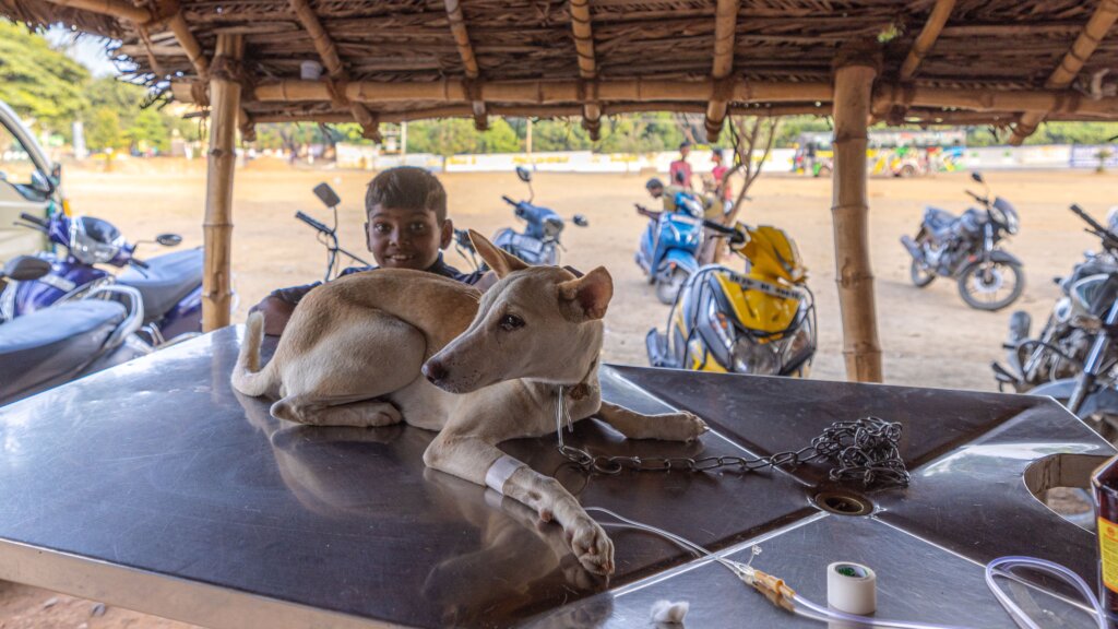 When we opened in 2007, it was awful. The worst I had seen. There were 350 suffering and dying animals on the streets. Widespread abuse. People avoided coming here. Most visitors to Ramana Maharshi Ashram would not stop for chai or a coconut across the road, because it was too emotionally disturbing to be approached by the pleading suffering puppies and dogs that were abundant.