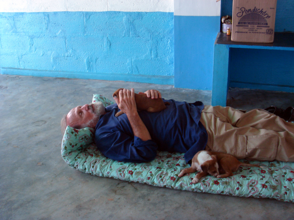 I remember late one night when Vishwa and I were in front of the Shelter with a puppy who was clearly fading and wasn’t going to make it. In the darkness, I held the baby against my Heart, stroking and kissing him. Then I noticed a light start to come thru his eyes. Vishwa was going to take him home to spend the night. I told him to hold the tiny creature against his Heart. The young babe experienced a strong reversal, and lived.