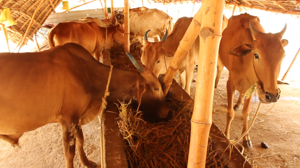 - A very good cowshed in Tiruvannamalai for the cows, calves, bulls, and bullocks. He hired five experienced caretakers (three for the day, two for the night) for around the clock care...and set up a good food supply.