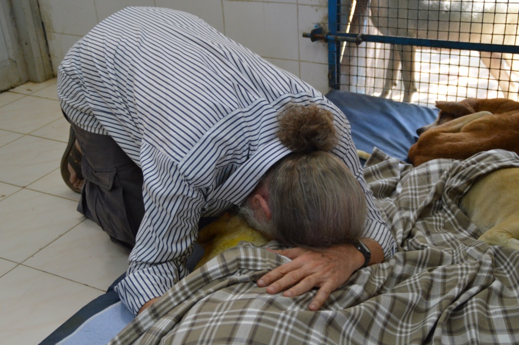 After 1 1/2 years, she became weak and unable to garner enough strength to stand up. It was on a Friday. We contacted the one government veterinarian who was expert in large animals. He was in meetings all day and was unable to come on Friday. Dr. Raja arranged to meet him at the Shelter 7:30 Saturday morning.